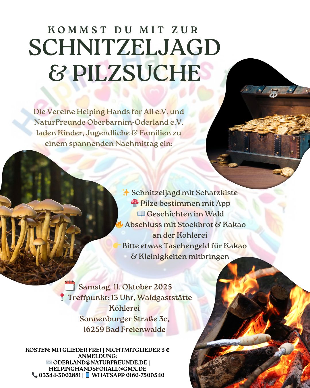 Die Vereine NaturFreunde Oberbarnim-Oderland e.V. und HelpingHandsforAll e.V. laden Sie herzlich ein, an unserem neuen Projekt „Schnitzeljagd & Pilzsuche“ teilzunehmen.